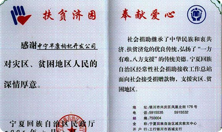 早康枸杞繼捐贈價(jià)值36萬元物資后,又捐10萬現(xiàn)金。